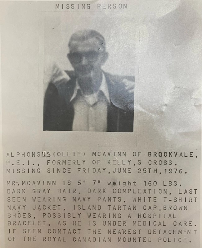 Details: Ollie, formerly of Westmoreland / Kelly’s Cross, was last seen June 25, 1976, in Brookvale, PEI. He was under medical care at the time of his disappearance.